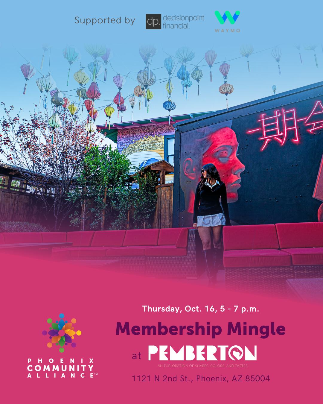 You're invited to experience the vibrant Pemberton. Come join us for PCA's Membership Mingle on Thursday, October 16th, from 5 p.m to 7 p.m. Don't miss this exclusive opportunity to connect, unwind, and explore!
